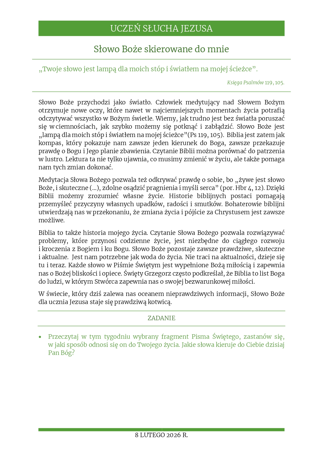 Rozważania na 8 lutego 2025 r. – „Słowo Boże skierowane do mnie”