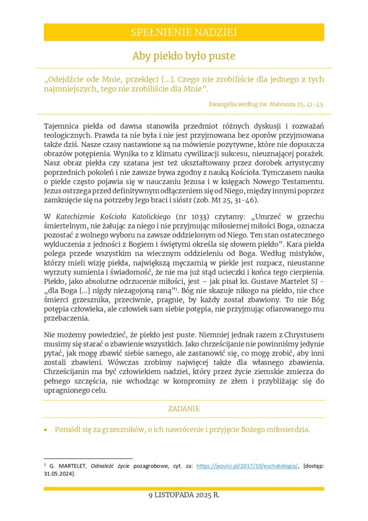 Rozważania na 9 listopada 2025 r. – „Aby piekło było puste”