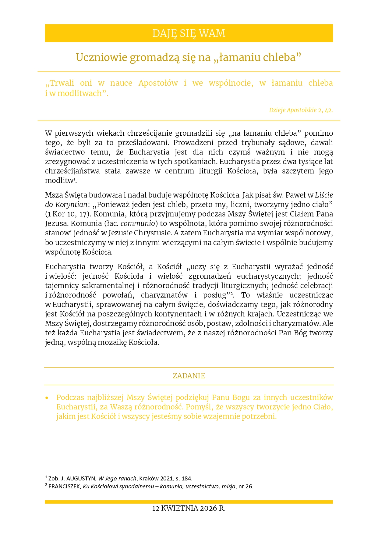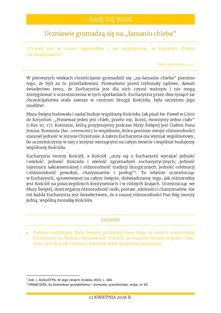 Rozważania na 12 kwietnia 2025 r. – „Uczniowie gromadzą się na „łamaniu chleba””