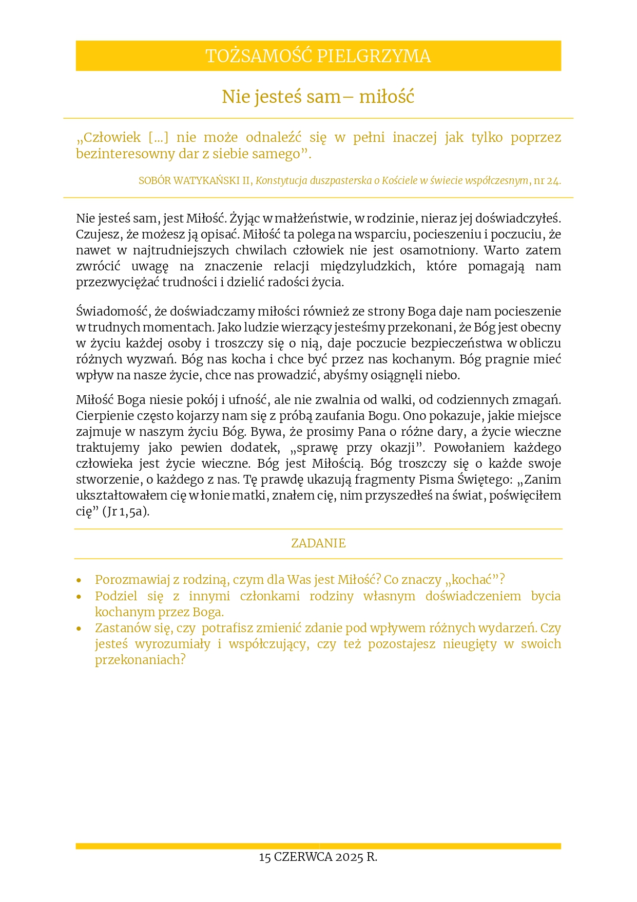 Rozważania na 15 czerwca 2025 r. – „Nie jesteś sam– miłość”