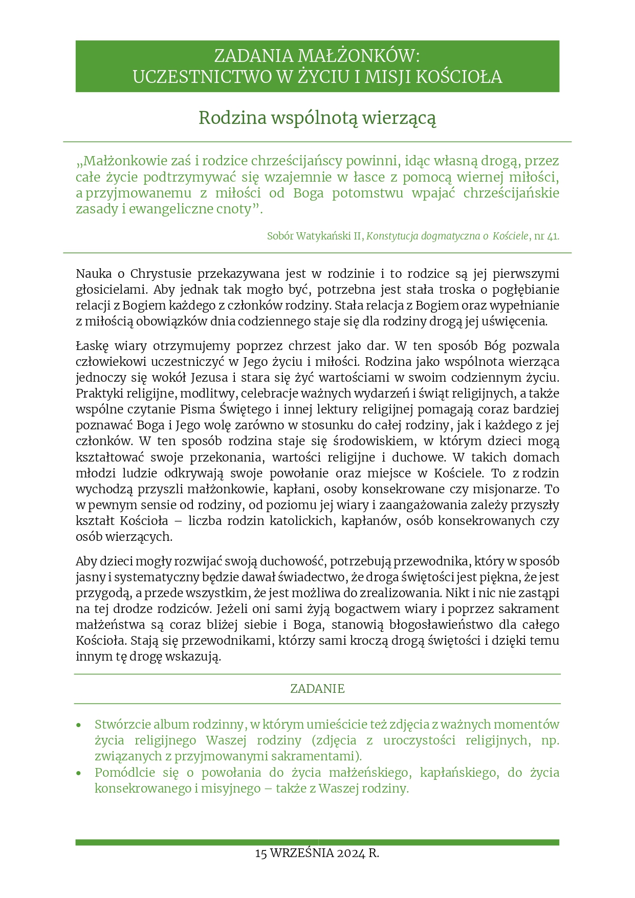 Rozważania na 15 września 2024 r. – „Rodzina wspólnotą wierzącą”
