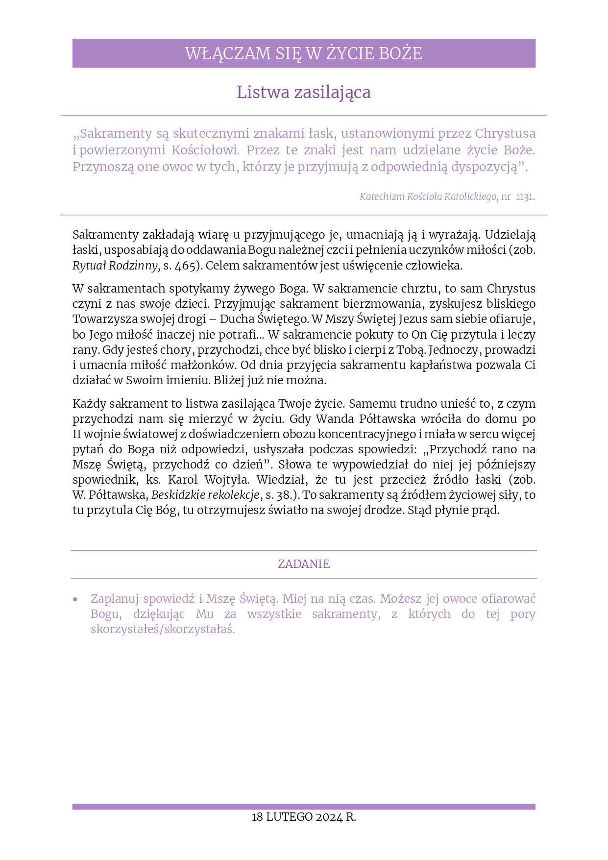 Rozważania na 18 lutego 2024 r. – „Listwa zasilająca”