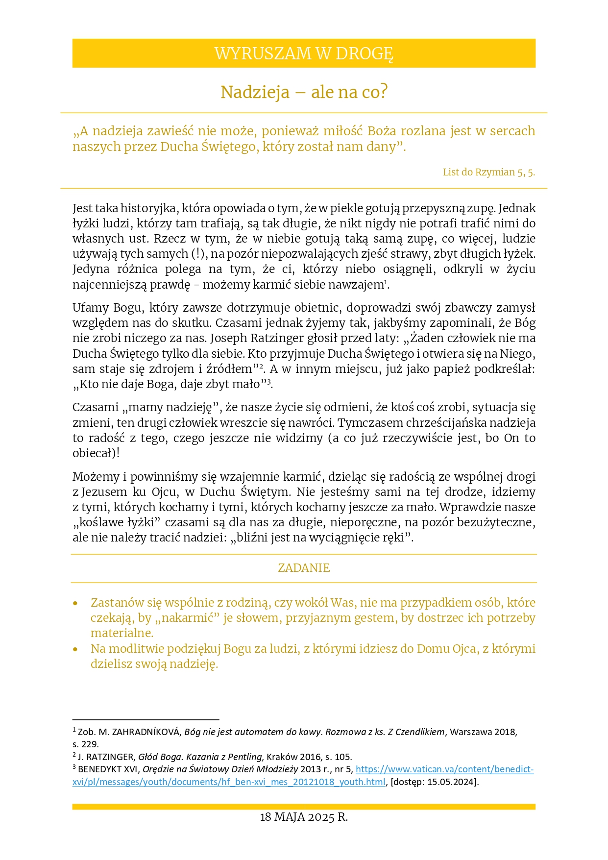 Rozważania na 18 maja 2025 r. – „Nadzieja – ale na co?”