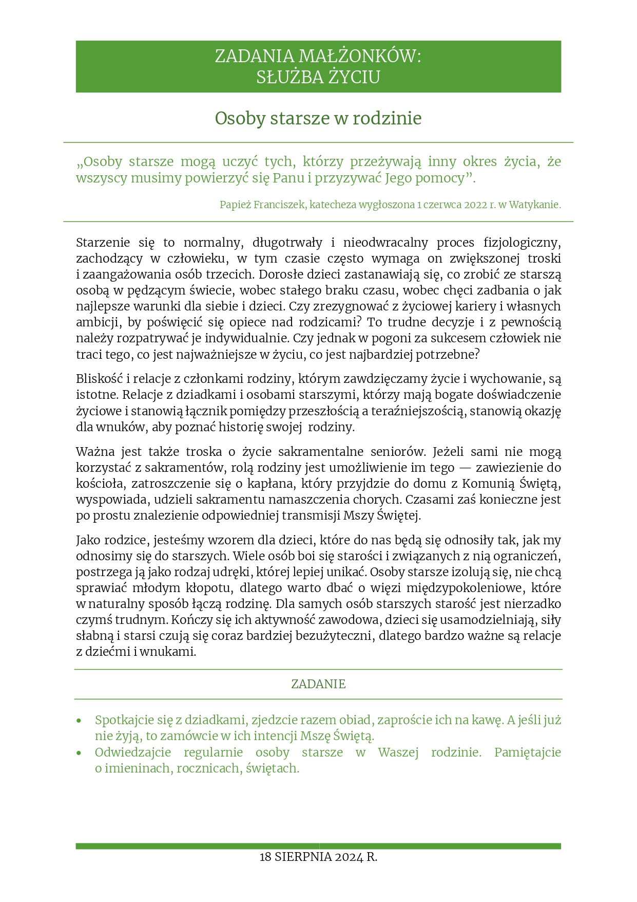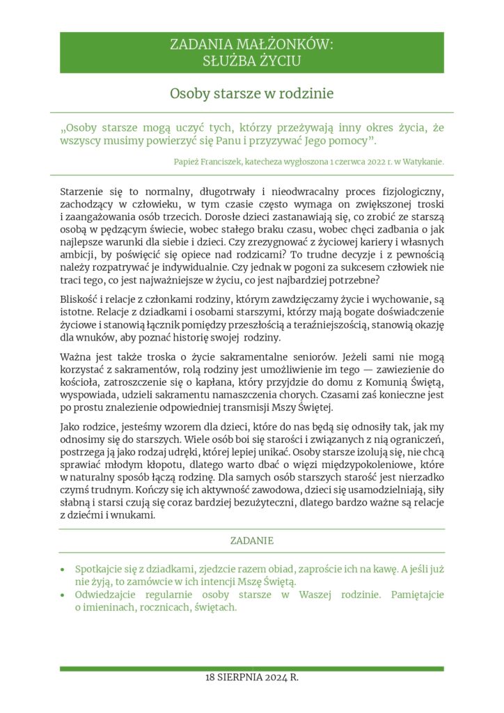 Rozważania na 18 sierpnia 2024 r. – „Osoby starsze w rodzinie”