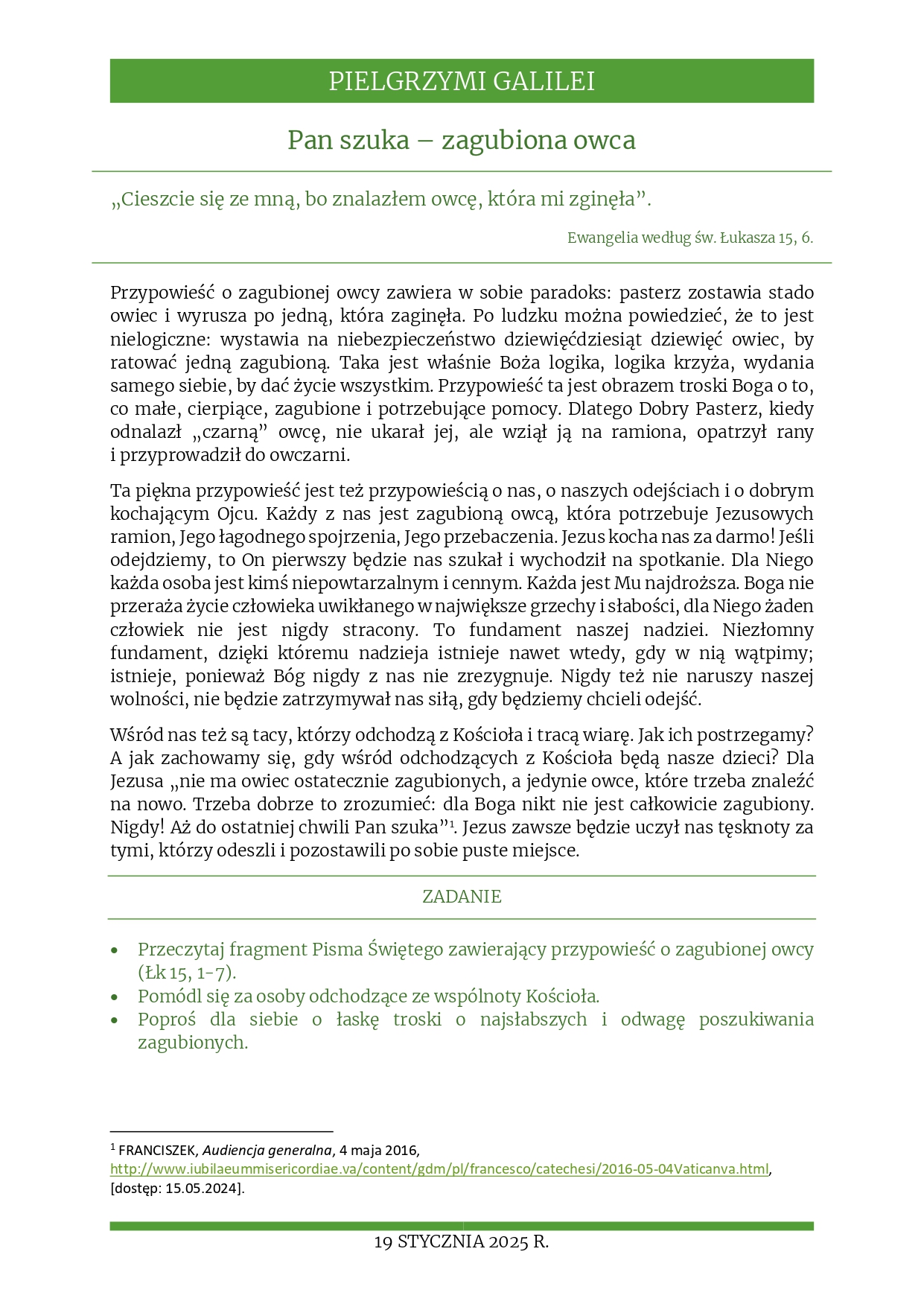 Rozważania na 19 stycznia 2025 r. – „Pan szuka – zagubiona owca”