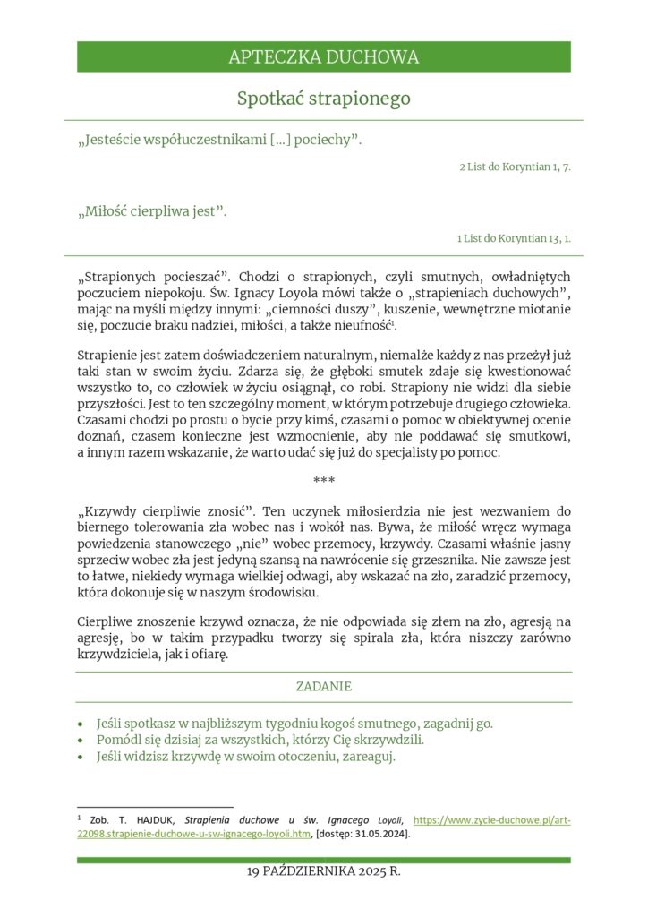 Rozważania na 19 października 2025 r. – „Spotkać strapionego”