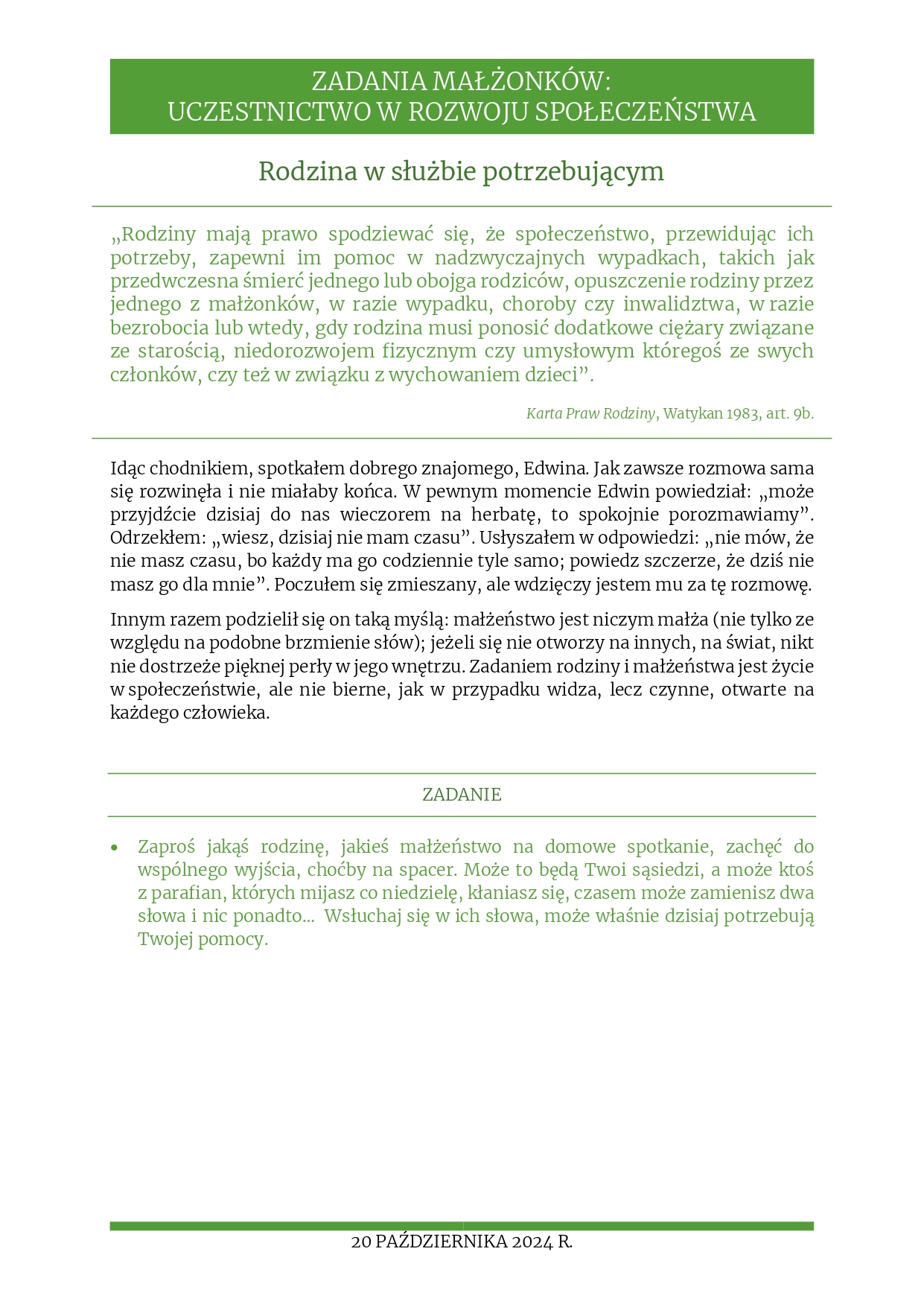 Rozważania na 20 października 2024 r. – „Rodzina w służbie potrzebującym”