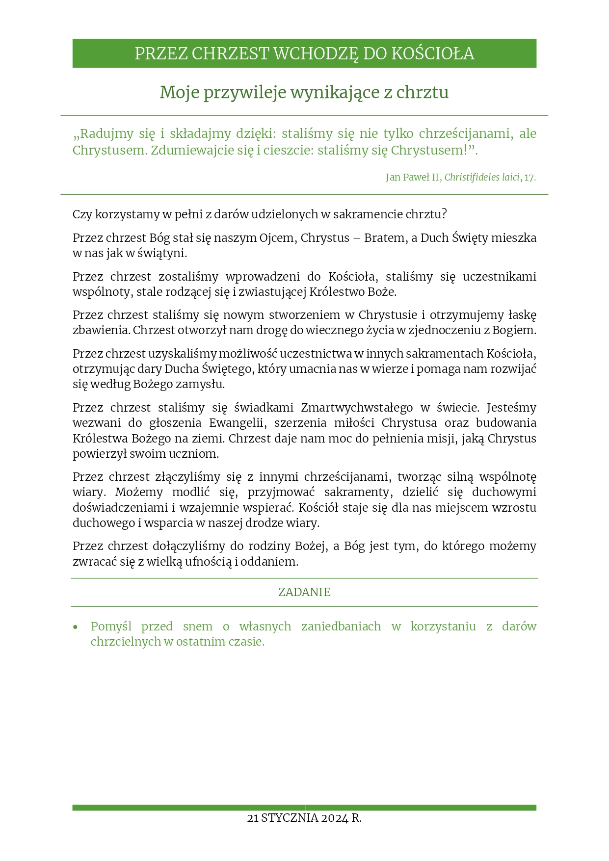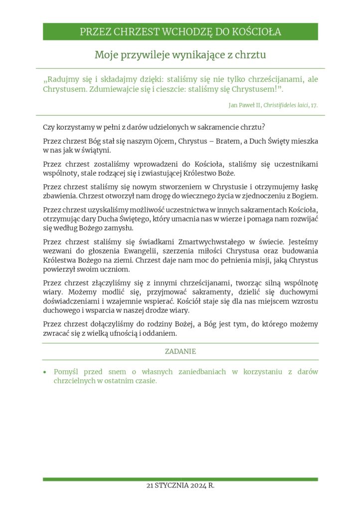 Rozważania na 21 stycznia 2024 r. – „Moje przywileje wynikające z chrztu”
