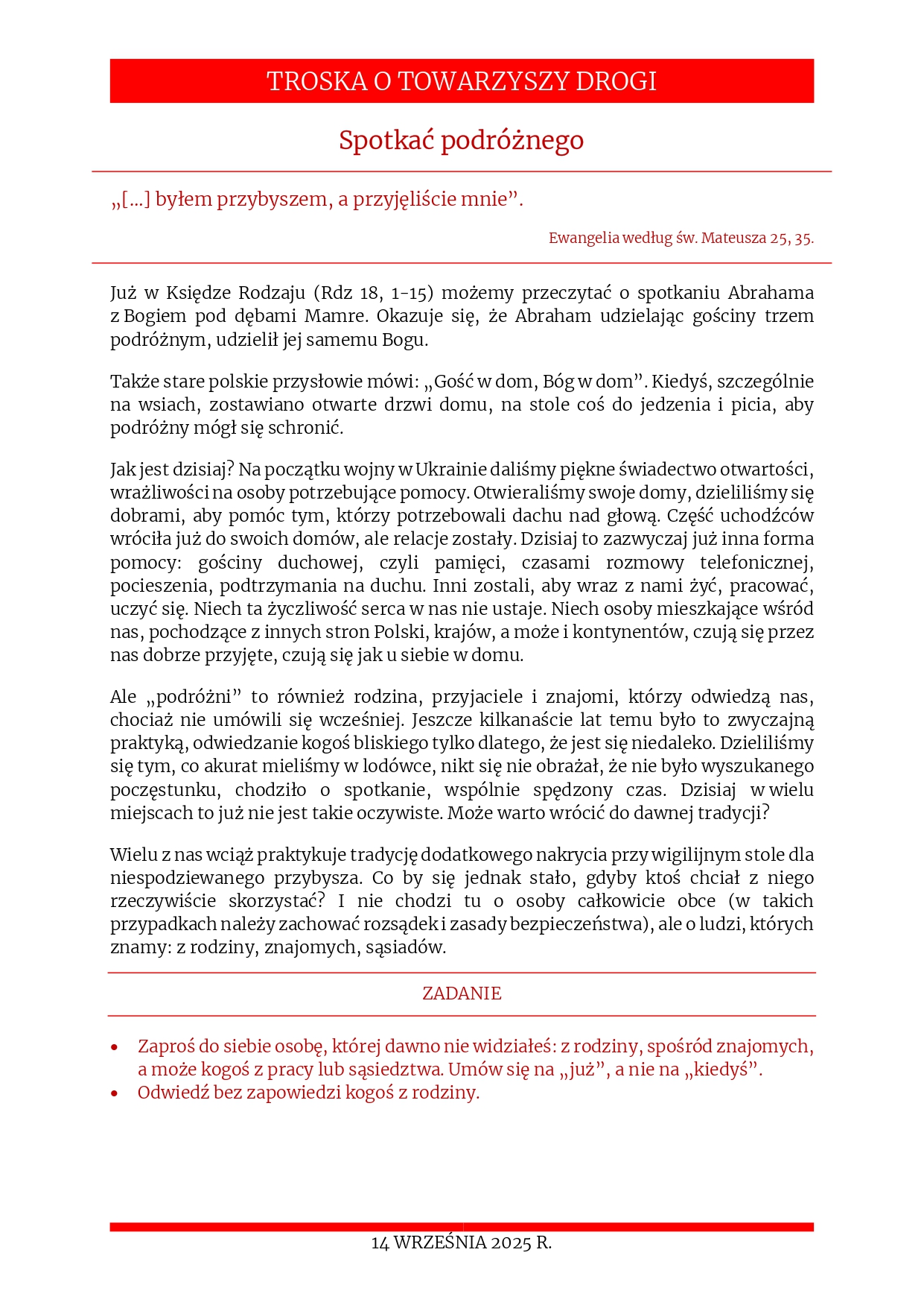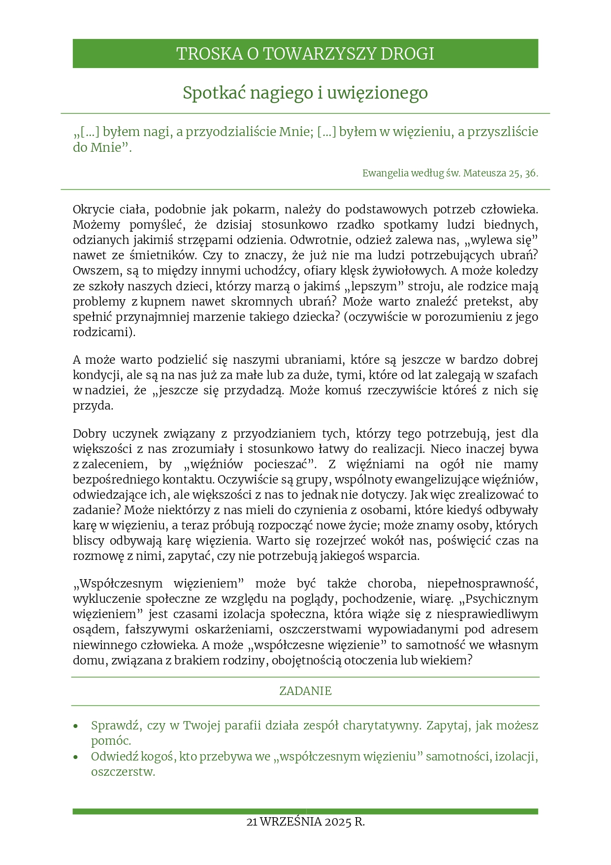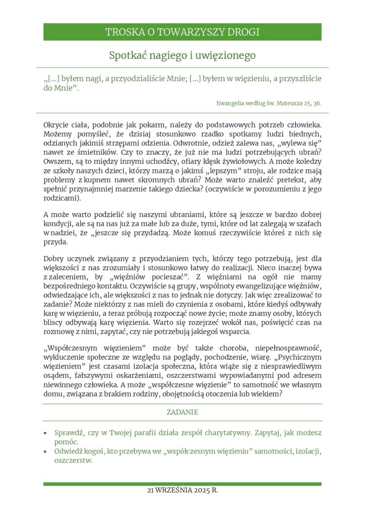 Rozważania na 21 września 2025 r. – „Spotkać nagiego i uwięzionego”