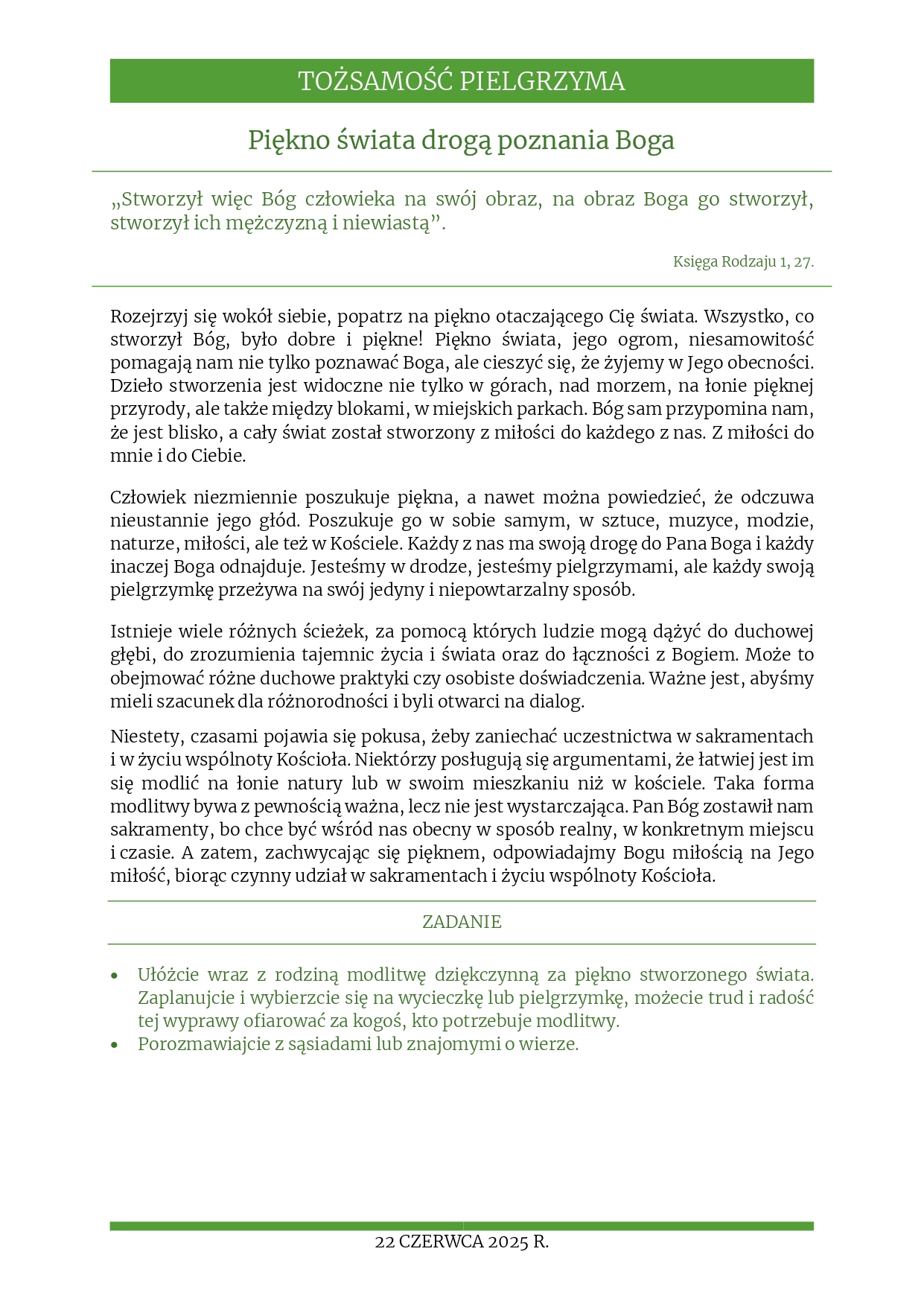 Rozważania na 22 czerwca 2025 r. – „Piękno świata drogą poznania Boga”