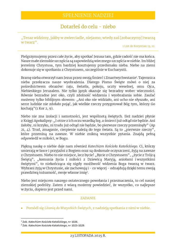 Rozważania na 23 listopada 2025 r. – „Dotarłeś do celu – niebo”