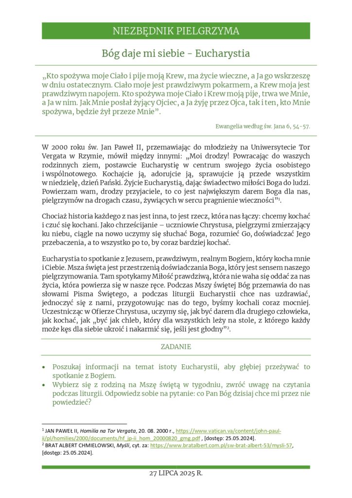 Rozważania na 27 lipca 2025 r. – „Bóg daje mi siebie – Eucharystia”