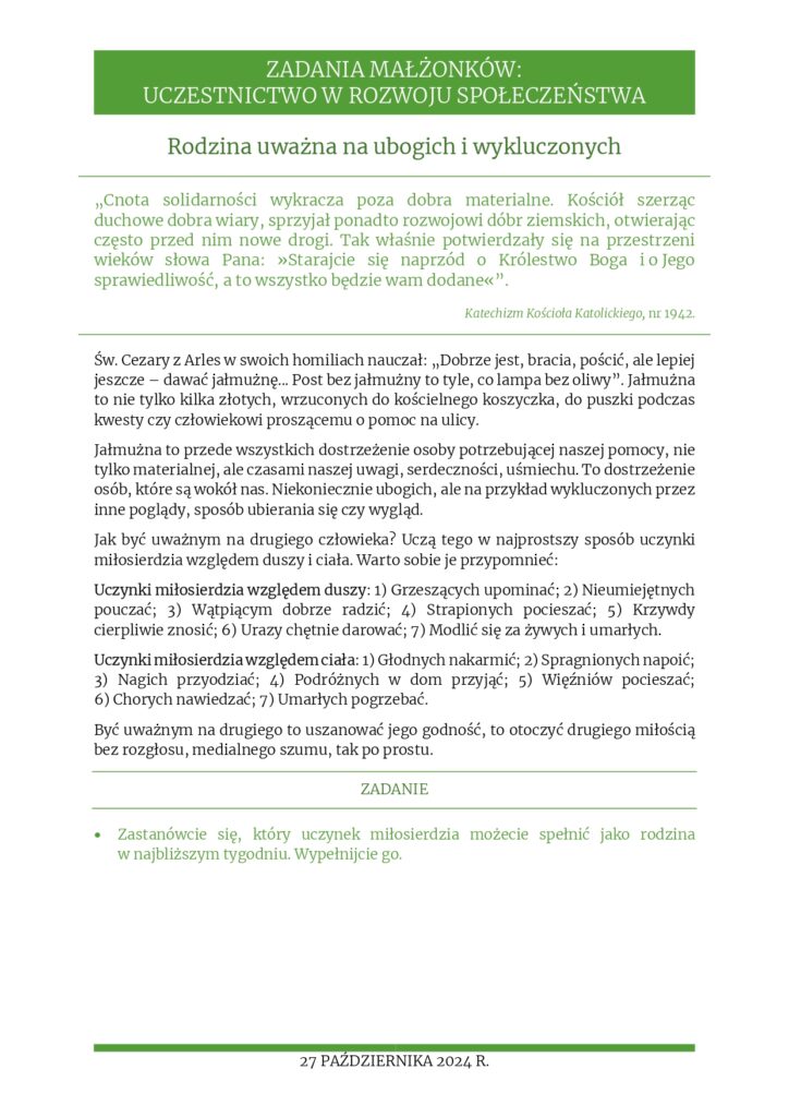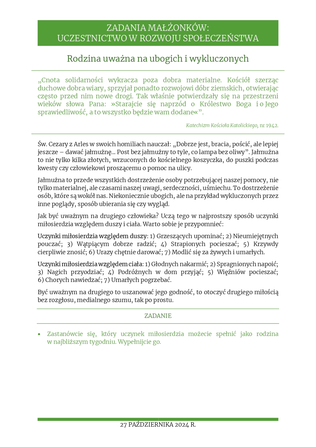 Rozważania na 27 października 2024 r. – „Rodzina uważna na ubogich i wykluczonych”