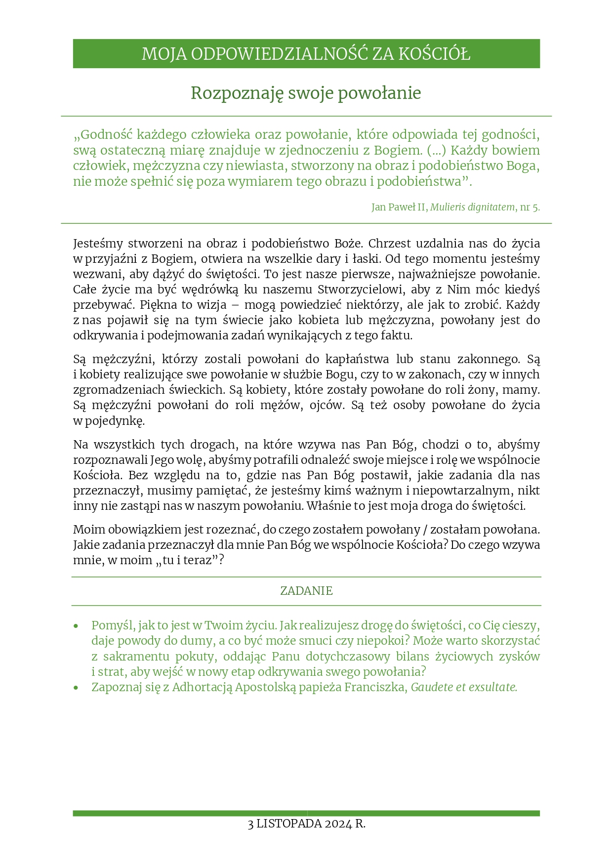 Rozważania na 3 listopada 2024 r. – „Rozpoznaję swoje powołanie”