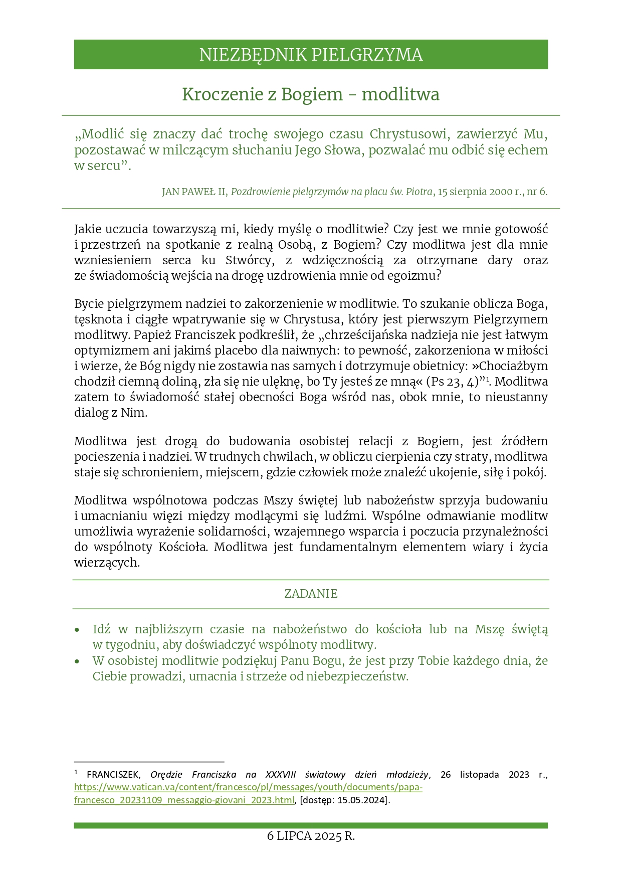 Rozważania na 6 lipca 2025 r. – „Kroczenie z Bogiem – modlitwa”