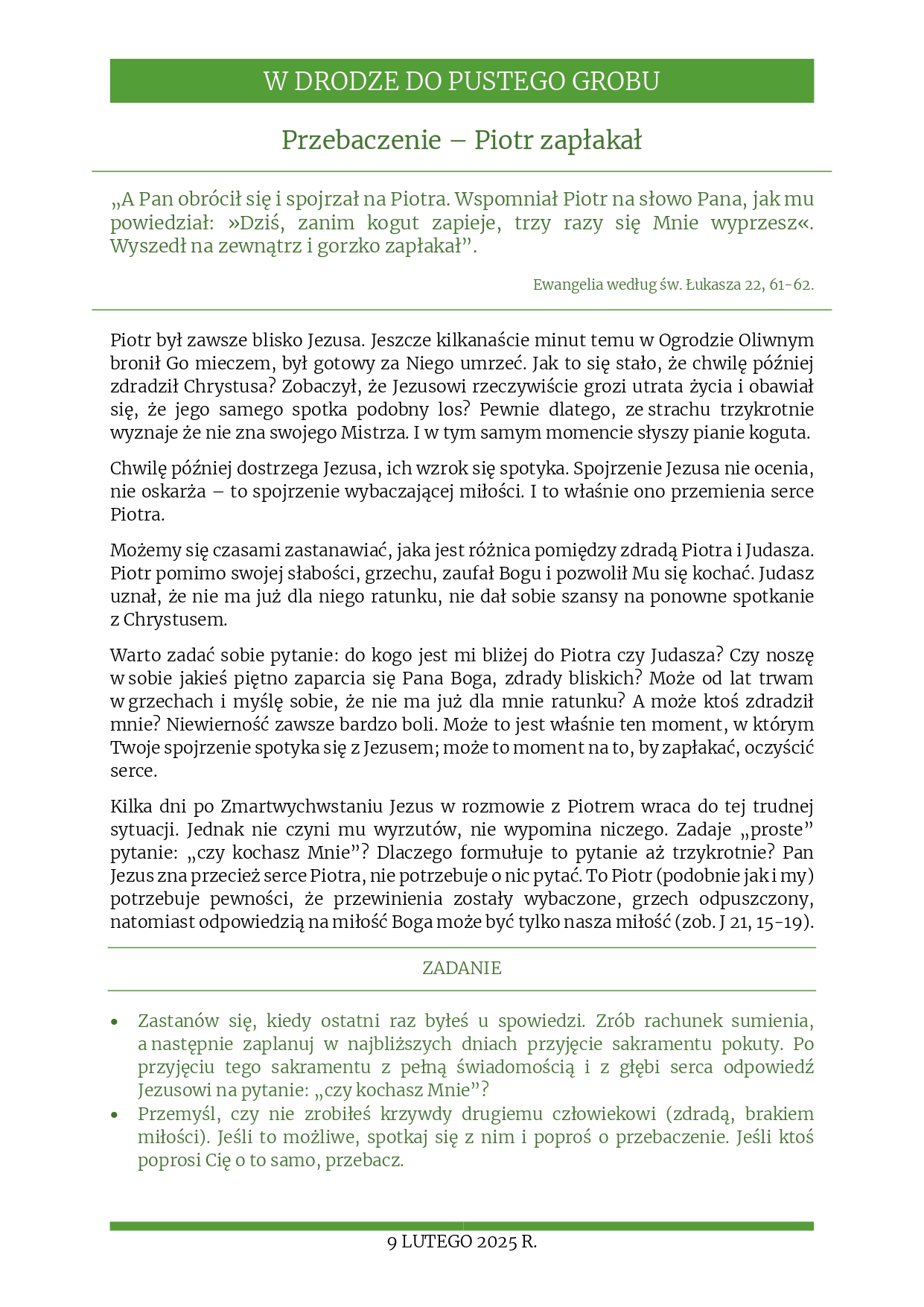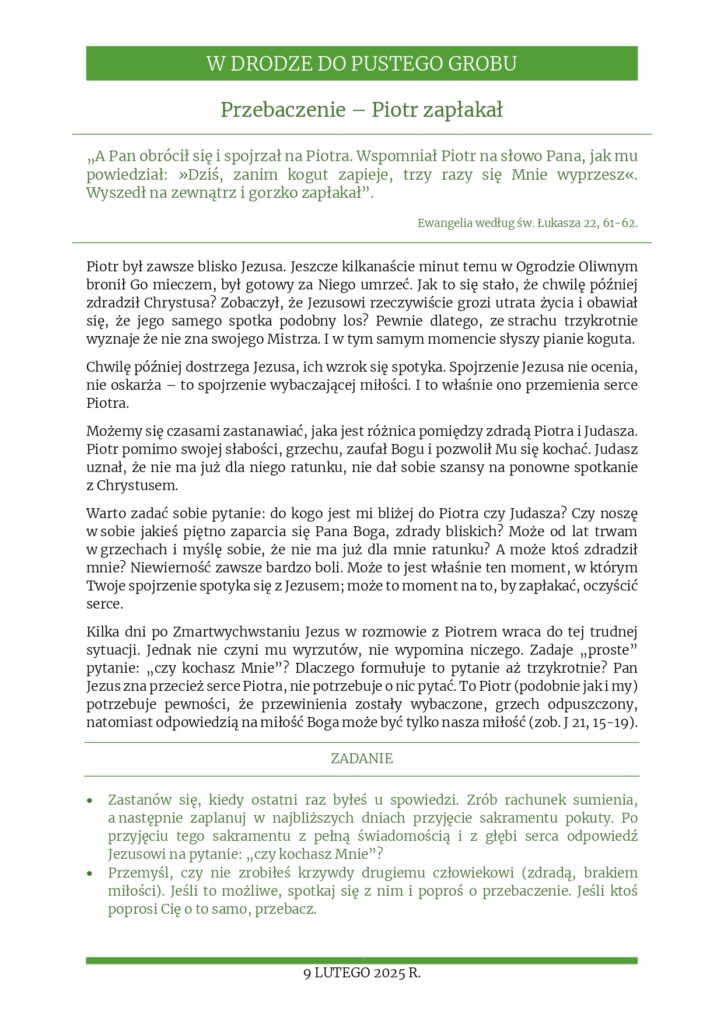 Rozważania na 9 luty 2025 r. – „Przebaczenie – Piotr zapłakał”